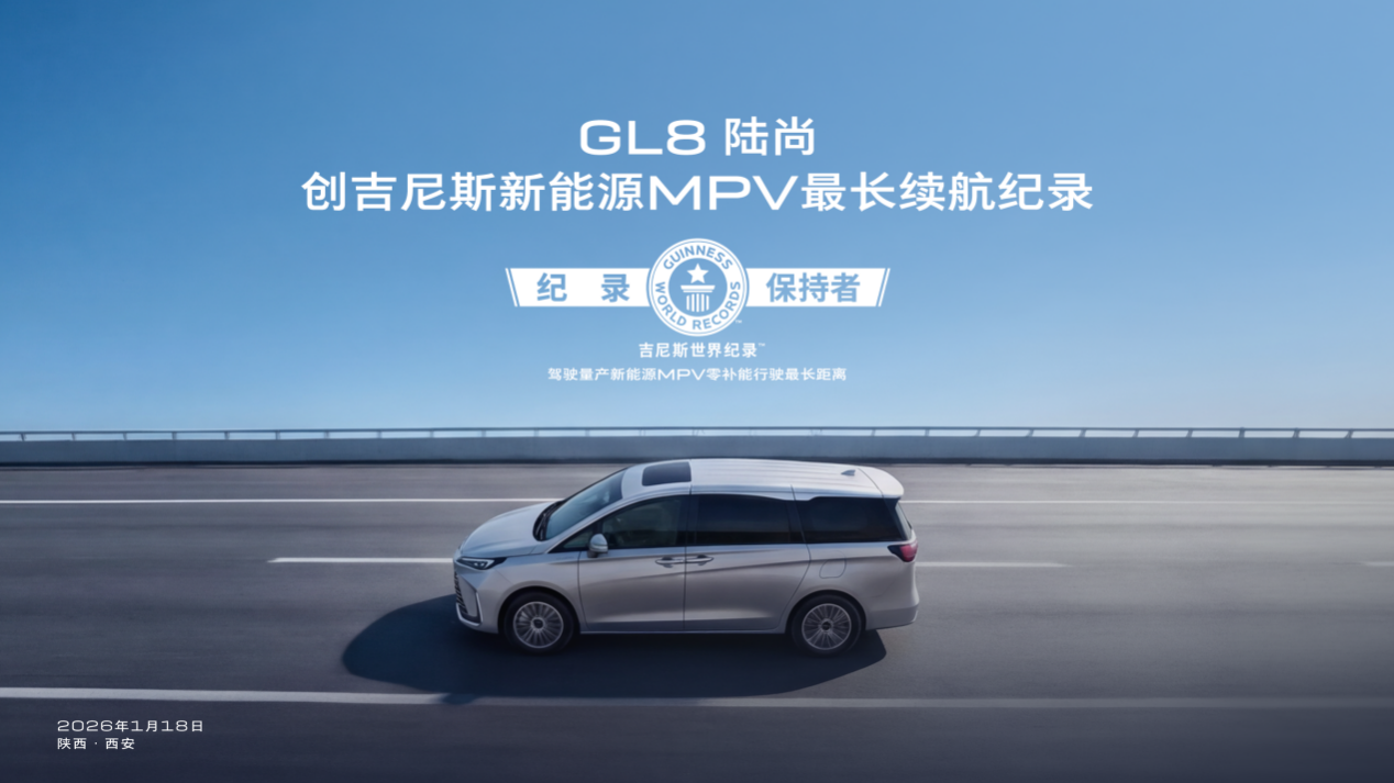 2026年3月2日,上汽通用汽车别克品牌宣布,其全新GL8陆尚车型成功挑战吉尼斯世界纪录,以零补能行驶超991公里的成绩,刷新了“量产新能源MPV零补能行驶最长距离”纪录。